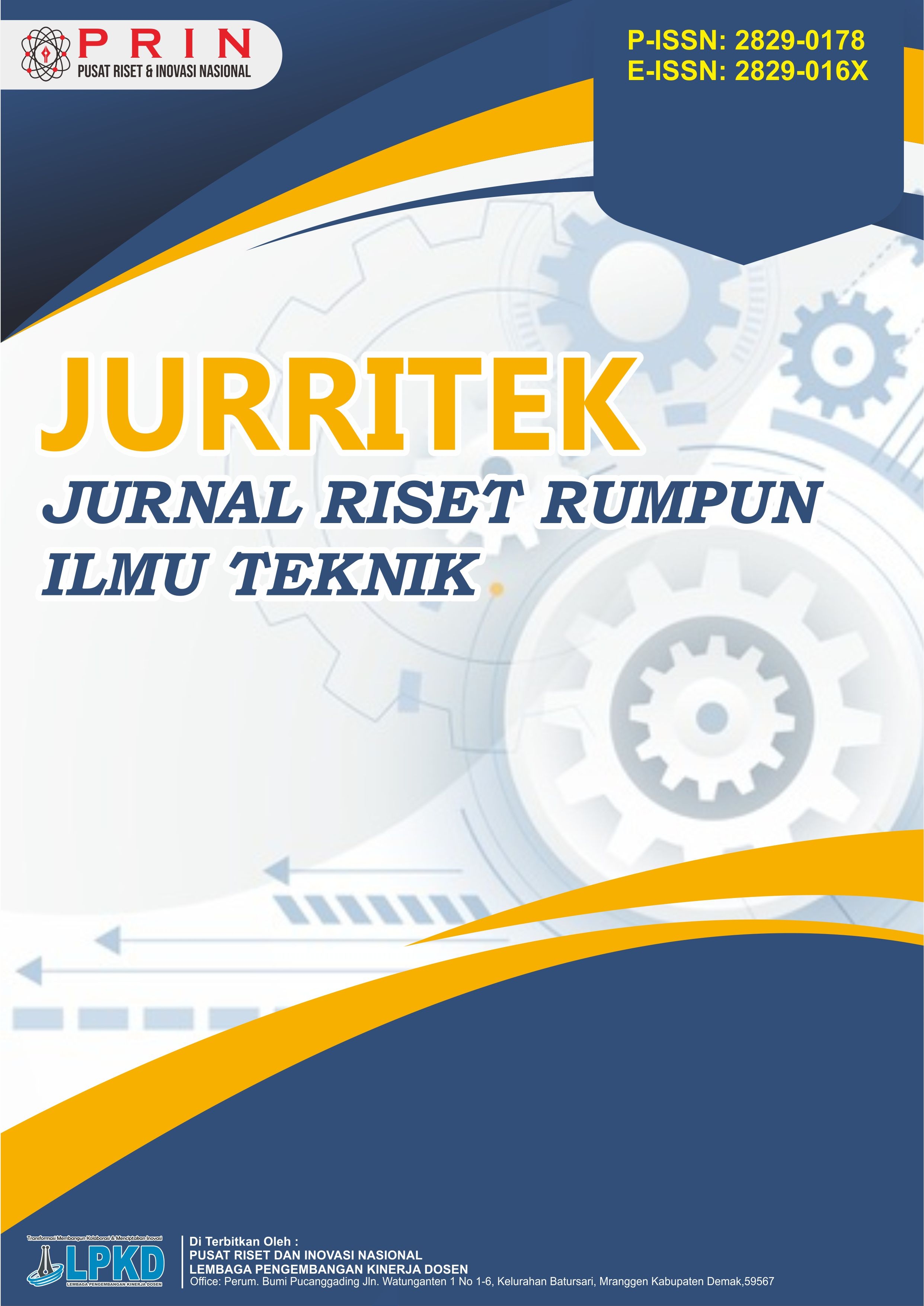 JURRITEK: Jurnal Riset Rumpun Ilmu Teknik: P-ISSN: 2829-0178(cetak) E-ISSN: 2829-016X(online) adalah jurnal yang ditujukan untuk publikasi artikel ilmiah yang diterbitkan oleh Pusat riset dan Inovasi Nasional, Lembaga Pengembangan Kinerja Dosen. Jurnal ini adalah jurnal Riset Rumpun Ilmu Teknik yang bersifat peer-review dan terbuka. Bidang kajian dalam jurnal ini termasuk sub rumpun Ilmu Teknik Sipil dan Perencanaan Tata Ruang, Keteknikkan Industri, Teknik Elektrinika dan Komputer, Teknik Kebumian dan Perkapalan. Jurnal Riset Rumpun Ilmu Teknik menerima artikel dalam bahasa Inggris dan bahasa Indonesia dan diterbitkan 2 kali setahun: Januari dan Juli. Silakan buat Artikel Template baru lalu kirimkan naskah Anda. Berikut adalah ruang lingkup Rumpun Ilmu Teknik Yaitu: Sub Rumpun TEKNIK SIPIL DAN PERENCANAAN TATA RUANG 1. Teknik Sipil 2. Teknik Lingkungan 3. Rancang Kota 4. Perencanaan Wilayah dan Kota 5. Teknik Pengairan 6. Teknik Arsitektur 7. Teknologi Alat Berat 8. Transportasi 9. Bidang Teknik Sipil Lain Yang Belum Tercantum Sub Rumpun ILMU KETEKNIKAN INDUSTRI 1. Teknik Mesin (dan Ilmu Permesinan Lain) 2. Teknik Produksi (dan Atau Manufakturing) 3. Teknik Kimia 4. Teknik (Industri) Farmasi 5. Teknik Industri 6. Penerbangan/Aeronotika dan Astronotika 7. Teknik Pertekstilan (Tekstil) 8. Teknik Refrigerasi 9. Bioteknologi Dalam Industri 10. Teknik Nuklir (dan Atau Ilmu Nuklir Lain) 11. Teknik Fisika 12. Teknik Enerji 13. Penginderaan Jauh 14. Teknik Material (Ilmu Bahan) 15. Bidang Keteknikan Industri Lain Yang Belum Tercantum Sub Rumpun TEKNIK ELEKTRO DAN INFORMATIKA 1. Teknik Elektro 2. Teknik Tenaga Elektrik 3. Teknik Telekomunikasi 4. Teknik Elektronika 5. Teknik Kendali (Atau Instrumentasi dan Kontrol) 6. Teknik Biomedika 7. Teknik Komputer 8. Teknik Informatika 9. Ilmu Komputer 10. Sistem Informasi 11. Teknologi Informasi 12. Teknik Perangkat Lunak 13 Teknik Mekatronika 14. Bidang Teknik Elektro dan Informatika Lain Yang Belum Tercantum Sub TEKNOLOGI KEBUMIAN 1. Teknik Panas Bumi 2. Teknik Geofisika 3. Teknik Pertambangan (Rekayasa Pertambangan) 4. Teknik Perminyakan (Perminyakan) 5. Teknik Geologi 6. Teknik Geodesi 7. Teknik Geomatika 8. Bidang Teknologi Kebumian Lain Yang Belum Tercantum Sub Rumpun ILMU PERKAPALAN 1. Teknik Perkapalan 2. Teknik Permesinan Kapal 3. Teknik Sistem Perkapalan 4. Teknik Kelautan dan Ilmu Kelautan 5. Oceanograpi (Oceanologi) 6. Bidang Perkapalan Lain Yang Belum Tercantum