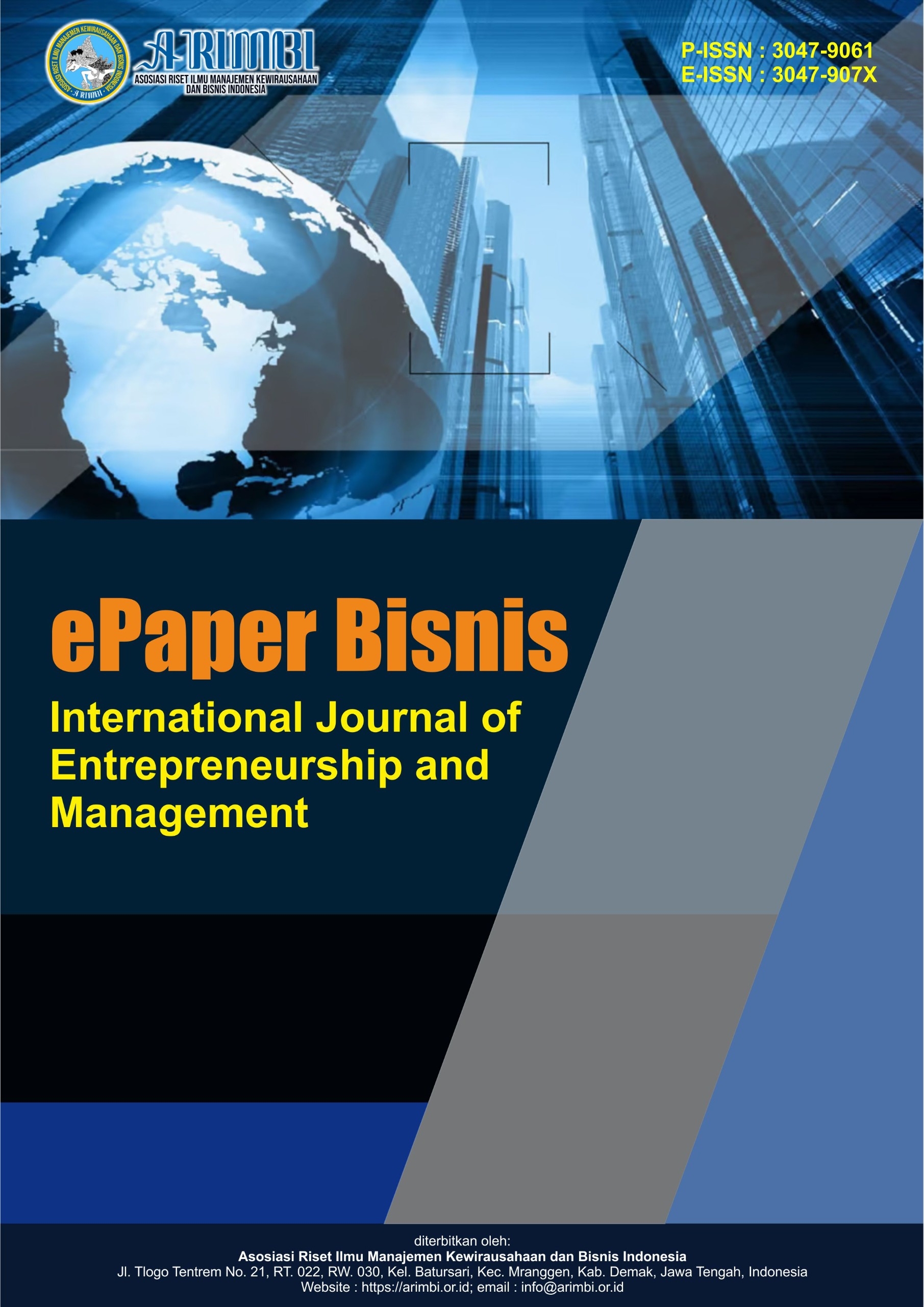 (ePaper Bisnis : International Journal of Entrepreneurship and Management) [e-ISSN : 3047-907X, p-ISSN : 3047-9061] is an open access Journal published by the ARIMBI (Asosiasi Riset Ilmu Manajemen Kewirausahaan dan Bisnis Indonesia). ePaper Bisnis accepts manuscripts based on empirical research results, new scientific literature review, and comments/ criticism of scientific papers published by ePaper Bisnis. This journal is a means of publication and a place to share research and development work in the field of Entrepreneurship and Management . Articles published in ePaper Bisnis are processed fully online. Submitted articles will go through peer review by a qualified international Reviewers. Complete information for article submission and other instructions are available in each issue. ePaper Bisnis publishes 4 (four) issues a year in March, June, September and December, however articles that have been declared accepted will be queued in the In-Press issue before published in the determined time.