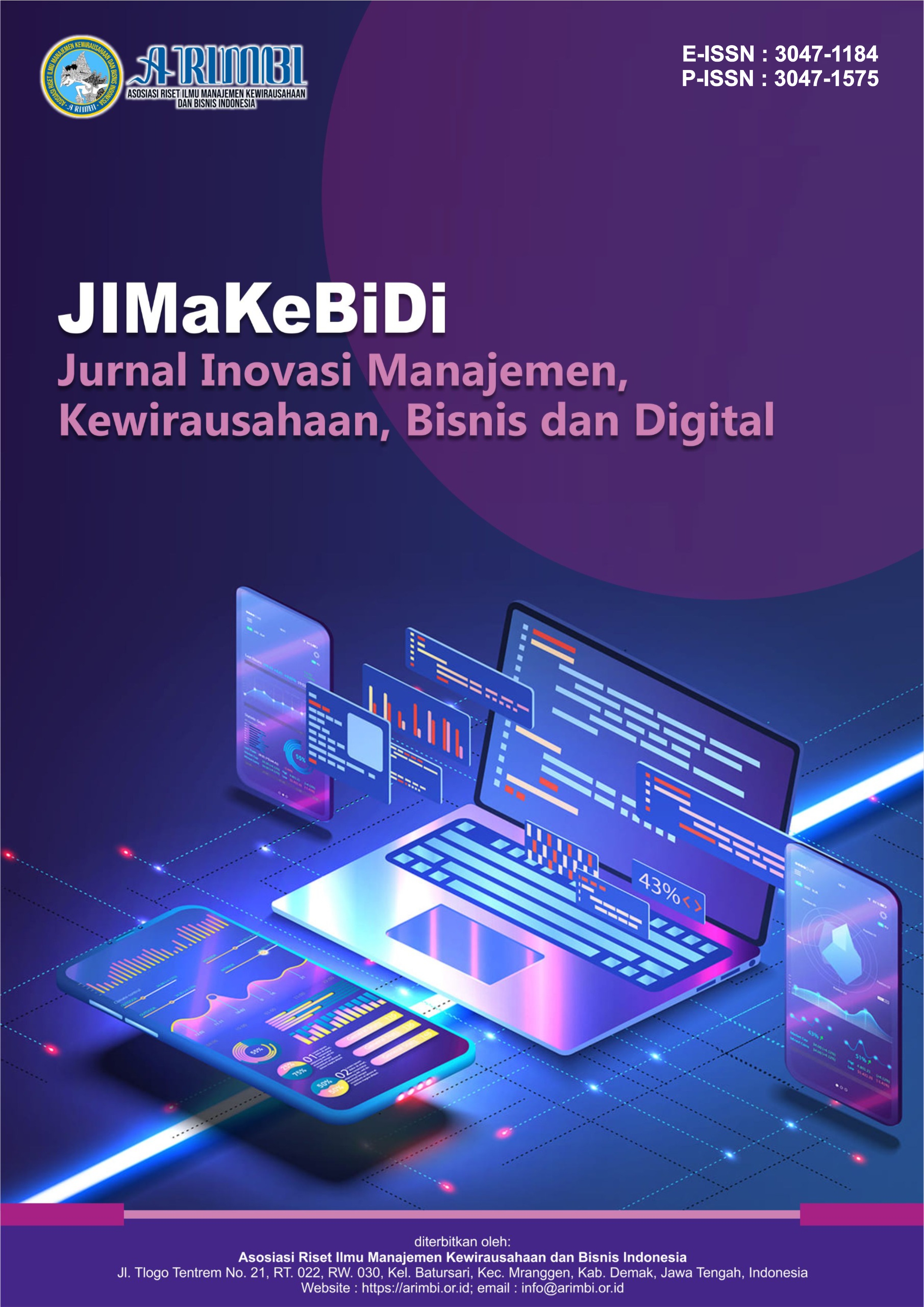 Jurnal Inovasi Manajemen, Kewirausahaan, Bisnis dan Digital (JIMaKeBiDi) dengan e-ISSN : 3047-1184, p-ISSN 3047-1575 diterbitkan oleh Asosiasi Riset Ilmu Manajemen Kewirausahaan dan Bisnis Indonesia. Jurnal Inovasi Manajemen, Kewirausahaan, Bisnis dan Digital (JIMaKeBiDi) memuat topik dalam Jurnal ini berkaitan dengan segala aspek manajemen, namun tidak terbatas pada topik berikut: Manajemen Sumber Daya Manusia, Manajemen Keuangan, Manajemen Pemasaran, Manajemen Sektor Publik, Manajemen Operasi, Manajemen Rantai Pasokan, Tata Kelola Perusahaan, Etika Bisnis, Akuntansi Manajemen dan Pasar Modal dan Investasi. Jurnal Inovasi Manajemen, Kewirausahaan, Bisnis dan Digital (JIMaKeBiDi) berkomitmen untuk memuat artikel berbahasa Indonesia dan berbahasa Inggris yang berkualitas dan dapat menjadi rujukan utama para peneliti dalam bidang Ilmu Manajemen dan Bisnis. Jurnal ini terbit 1 tahun 4 kali (Februari, Mei, Agustus dan November).