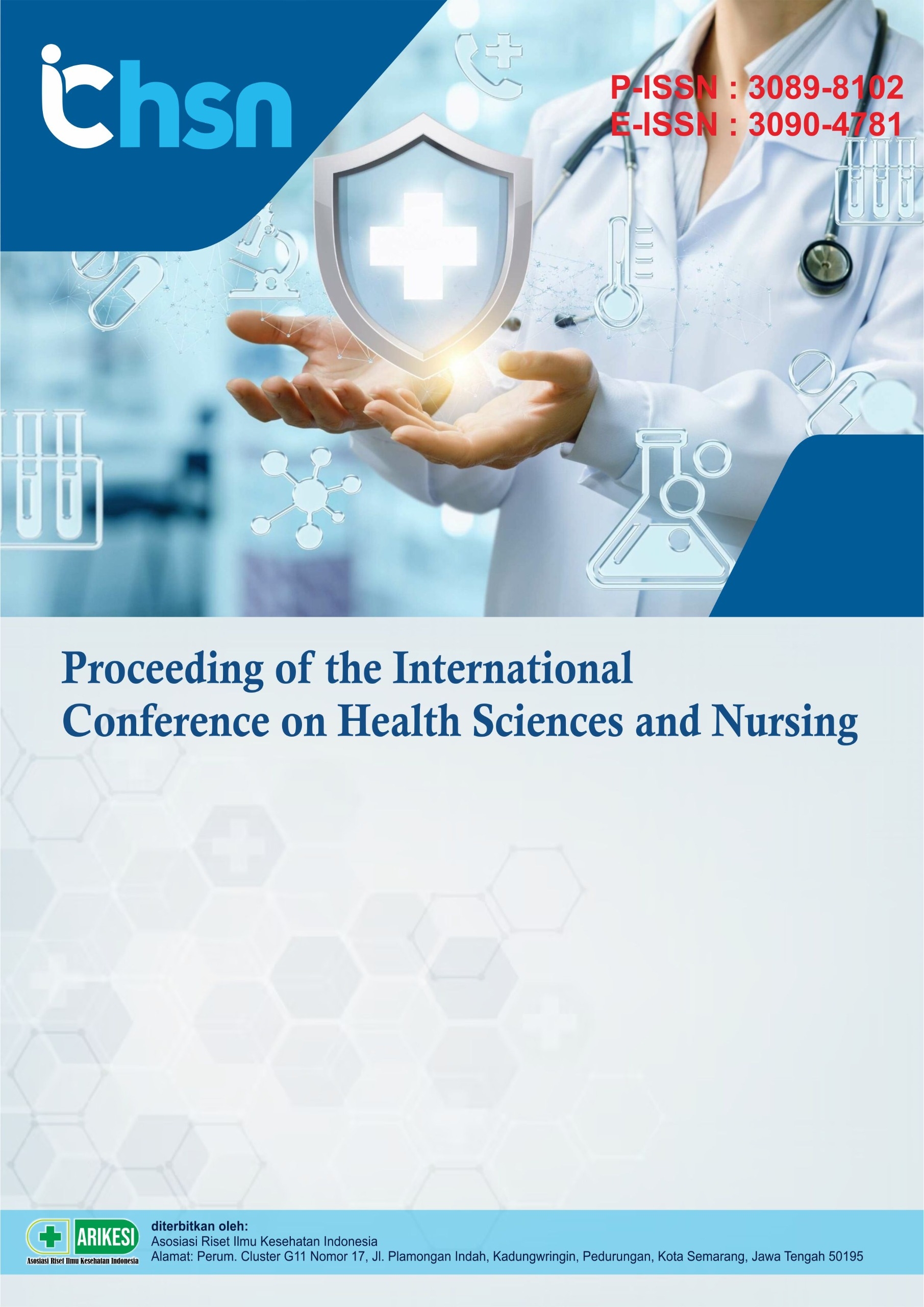 Proceeding of the International Conference on Health Sciences and Nursing is a forum that brings together researchers, health practitioners, and academics from around the world to share knowledge, latest findings, and innovative ideas in the field of health, medical sciences, and published by Asosiasi Riset Ilmu Kesehatan Indonesia, This journal presents a collection of papers presented and discussed at the international conference. In this journal, readers will find a wide range of relevant topics in health and medical sciences, including but not limited to biomedical research, epidemiology, health policy, clinical practice, and medical technology. Each paper presented makes a valuable contribution to our understanding of global health challenges as well as efforts to improve overall public health.