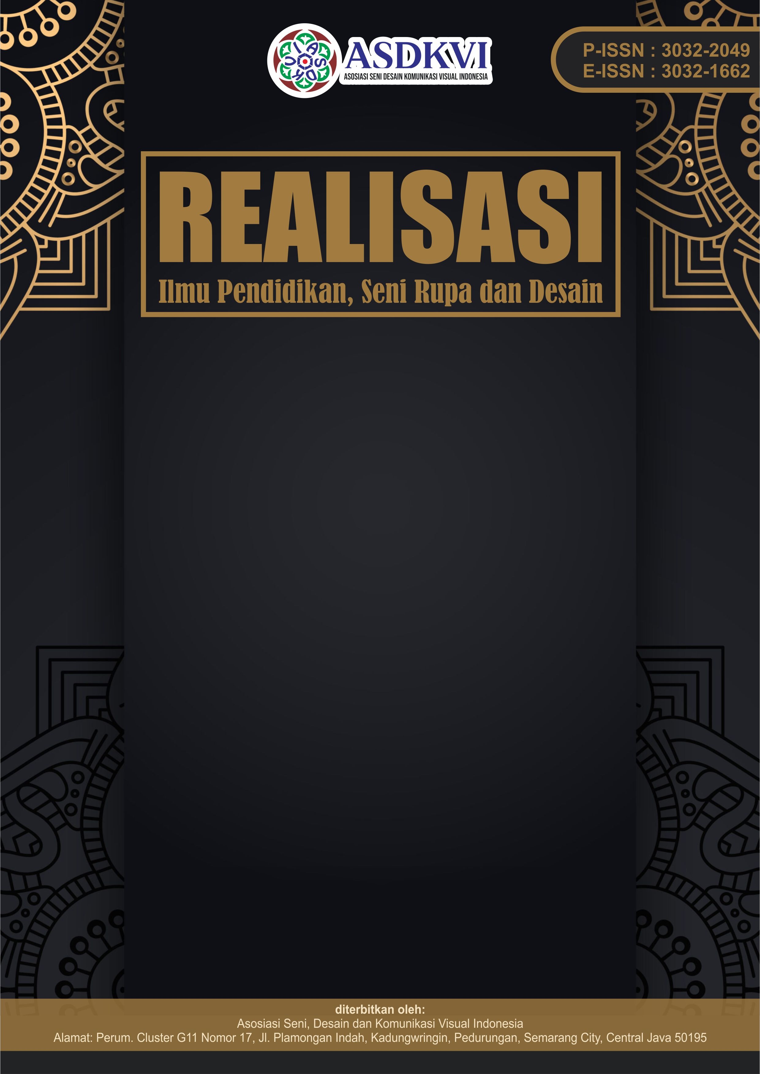 Realisasi : Ilmu Pendidikan, Seni Rupa dan Desain merupakan jurnal yang dikhususkan untuk publikasi artikel ilmiah yang diterbitkan oleh Asosiasi Seni Desain dan Komunikasi Visual Indonesia. Jurnal ini adalah jurnal Pendidikan, Seni Rupa dan Desain yang ditinjau sejawat dan terbuka. Bidang kajian dalam jurnal ini meliputi subkelompok Pendidikan, Seni Rupa, dan Desain. Realisasi: Pendidikan, Seni Rupa dan Desain menerima artikel dalam bahasa Inggris dan Indonesia dan jurnal ini terbit 1 tahun 4 kali (Januari, April, Juli dan Oktober).