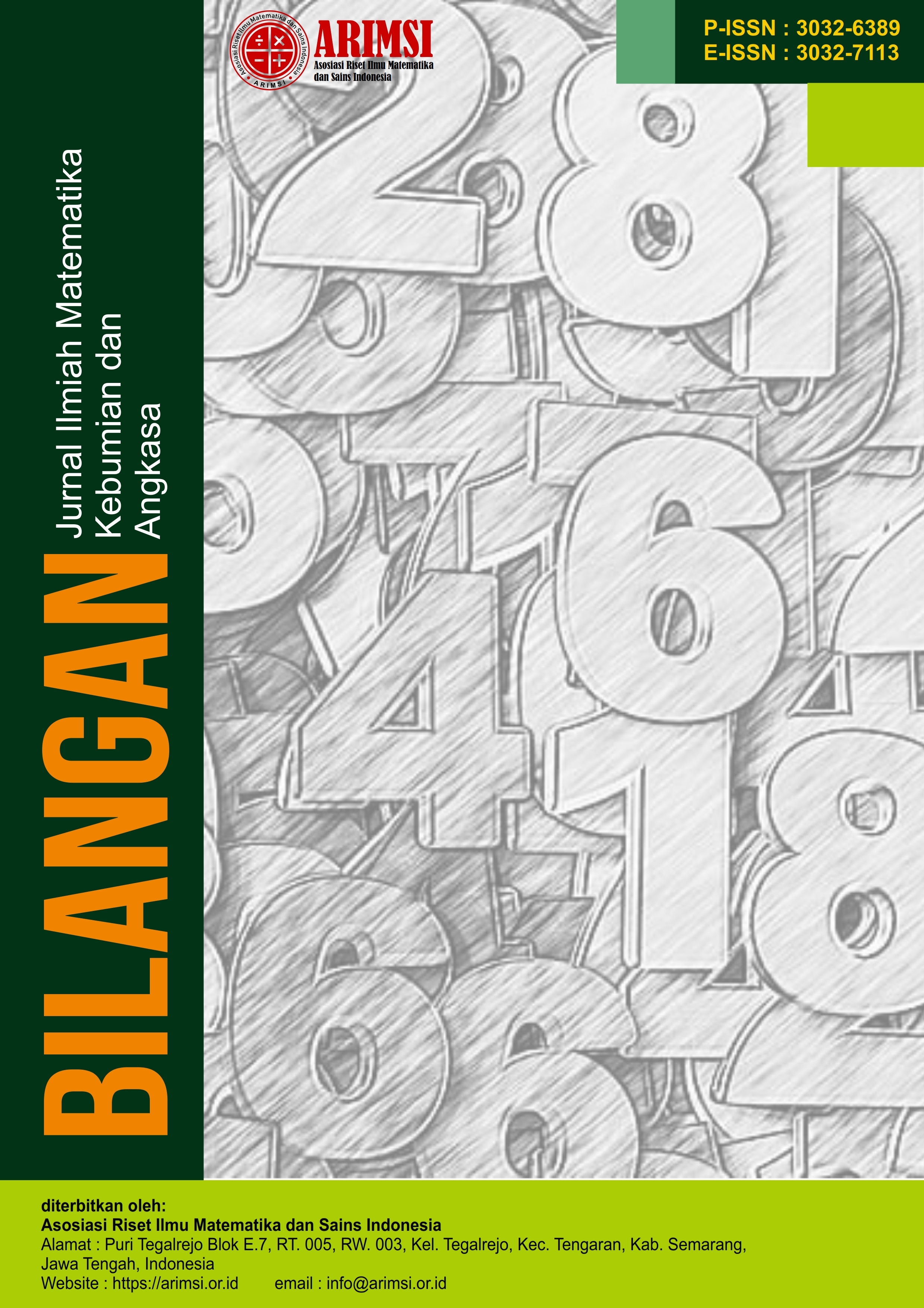 Bilangan : Jurnal Ilmiah Matematika, Kebumian dan Angkasa adalah jurnal yang ditujukan untuk publikasi artikel ilmiah yang diterbitkan oleh Asosiasi Riset Matematika dan Ilmu Pengetahuan Alam. Jurnal ini adalah Ilmiah Matematika, Kebumian dan Angkasa yang bersifat peer-review dan terbuka. Bidang kajian dalam jurnal ini termasuk sub rumpun Ilmu Matematika, Kebumian dan Angkasa. Bilangan : Jurnal Ilmiah Matematika, Kebumian dan Angkasa menerima artikel dalam bahasa Inggris dan bahasa Indonesia dan diterbitkan 1 tahun 6 kali (Februari, April, Juni, Agustus, Oktober dan Desember). Silakan buat Artikel Template baru lalu kirimkan naskah Anda.