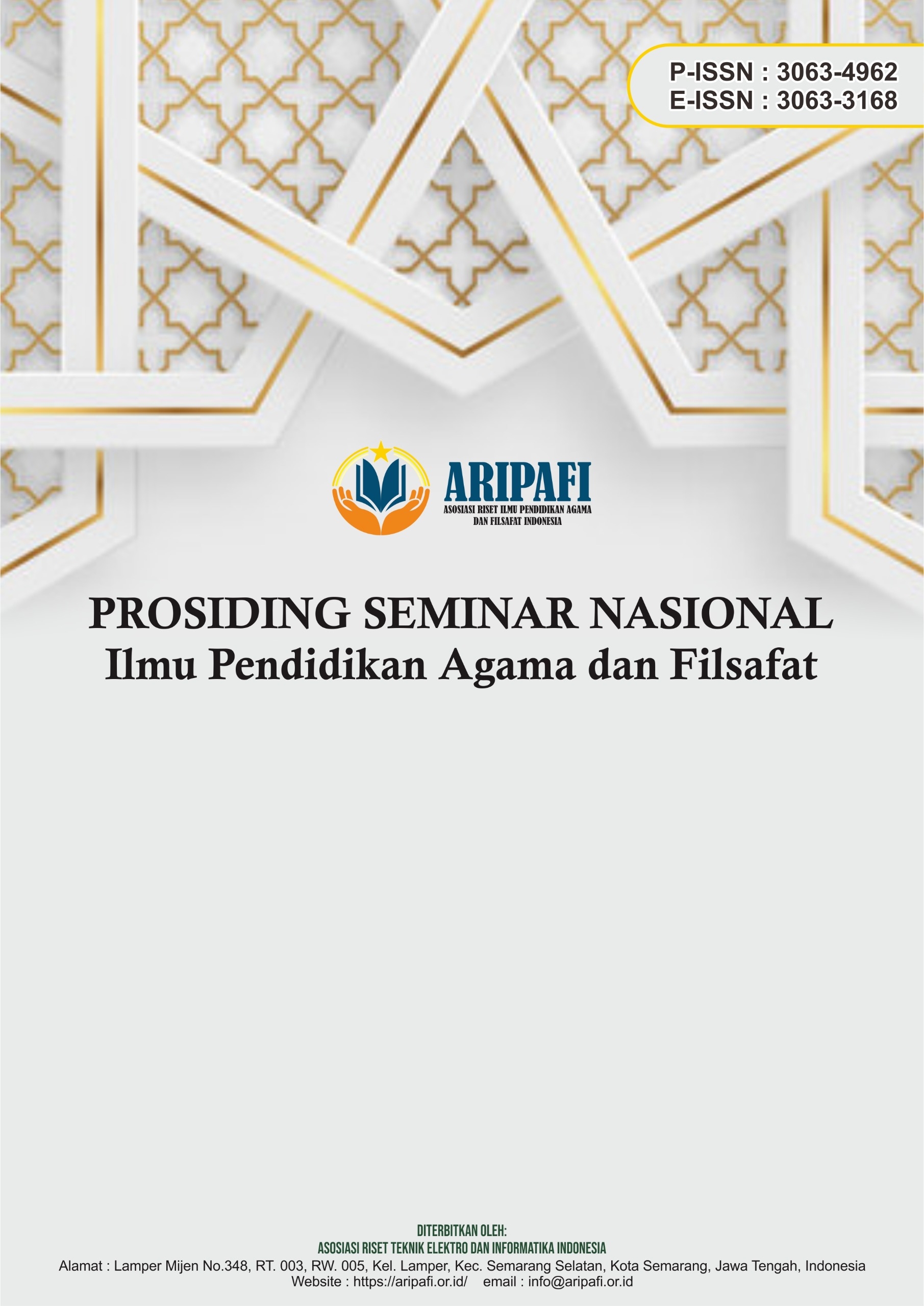 Prosiding Seminar Nasional Ilmu Pendidikan Agama dan Filsafat, It is a collection of scientific papers or articles that have been presented at the National Research Conference which is held regularly every year by the Indonesian Religion and Philosophy Education Research Association. The topics of the papers published in the Prosiding Seminar Nasional Ilmu Pendidikan Agama dan Filsafat are: (a). Religion, (b). Religion (Philosophy) of Hinduism, Buddhism and others not yet listed, (c). Sociology of Religion, (d). Other relevant fields and published twice a year (June and December).