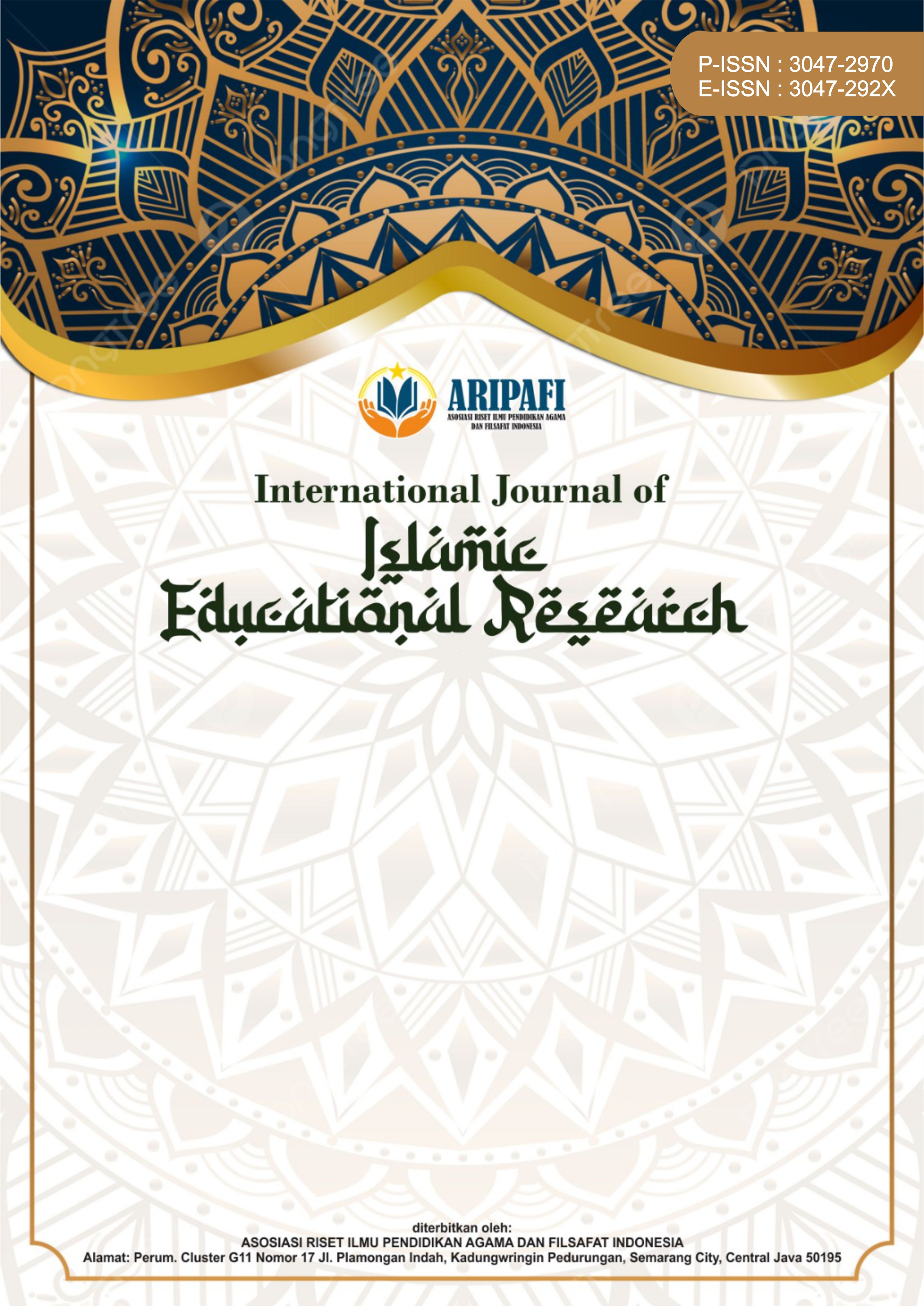 (International Journal of Islamic Educational Research) [e-ISSN : 3047-292X p-ISSN : 3047-2970] is an open access Journal published by the aripafi (Asosiasi Riset Ilmu Pendidkan Agama dan Filsafat Indonesia). IJIER accepts manuscripts based on empirical research results, new scientific literature review, and comments/ criticism of scientific papers published by IJIER. This journal is a means of publication and a place to share research and development work in the field of Islamic . Articles published in IJIER are processed fully online. Submitted articles will go through peer review by a qualified international Reviewers. Complete information for article submission and other instructions are available in each issue. IJIER publishes 4 (four) issues a year in January, April, July and October, however articles that have been declared accepted will be queued in the In-Press issue before published in the determined time.