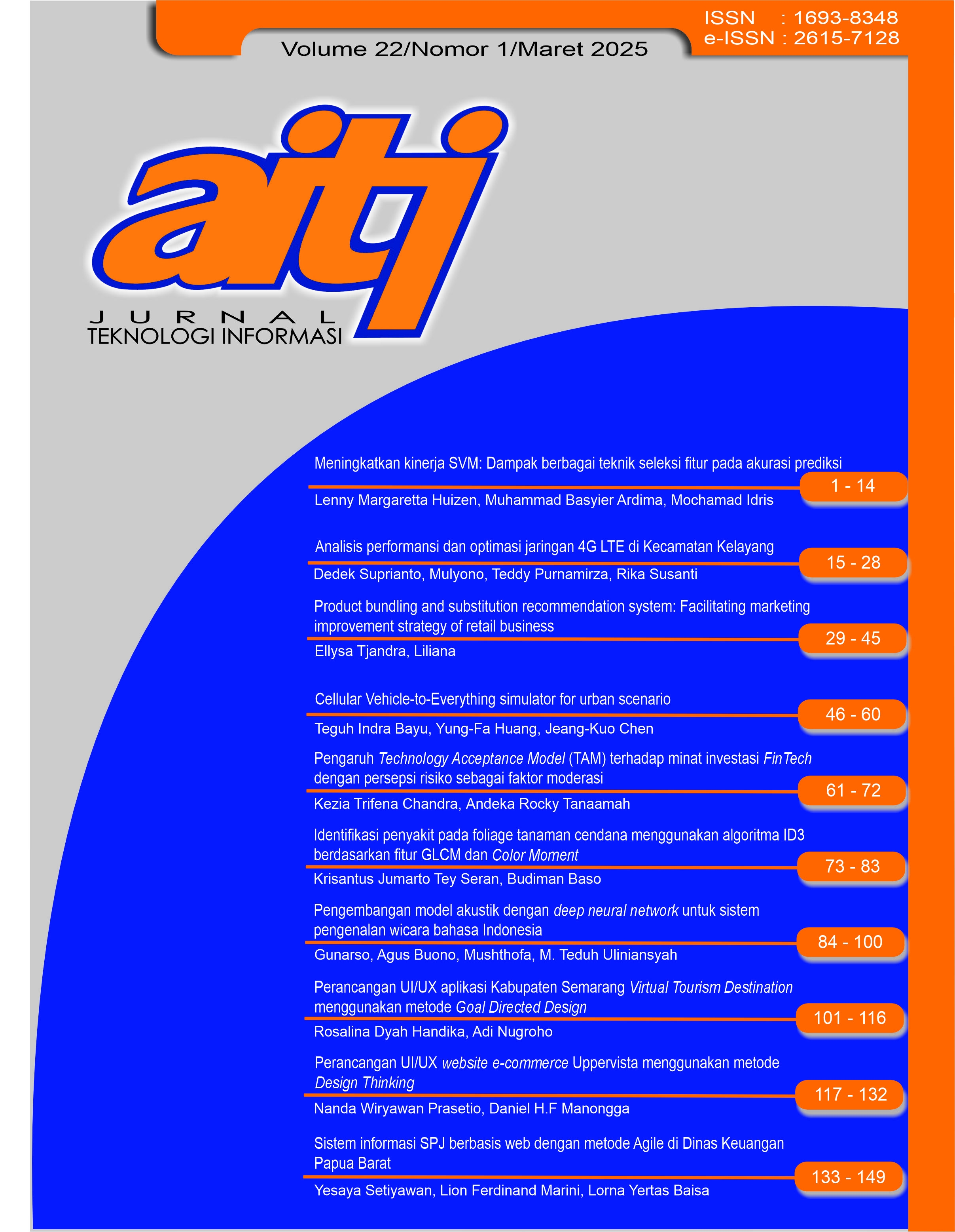 AITI: Jurnal Teknologi Informasi is a peer-review journal focusing on information system and technology issues. AITI invites academics and researchers who do original research in information system and technology, including but not limited to: Cryptography Networking Internet of Things Big Data Data Science Software Engineering Information System Web Programming Mobile Application Service System Artificial Intelligence Digital Image Processing Machine Learning Deep Learning Geographic Information System Context Aware System Management Information System Software-defined Network