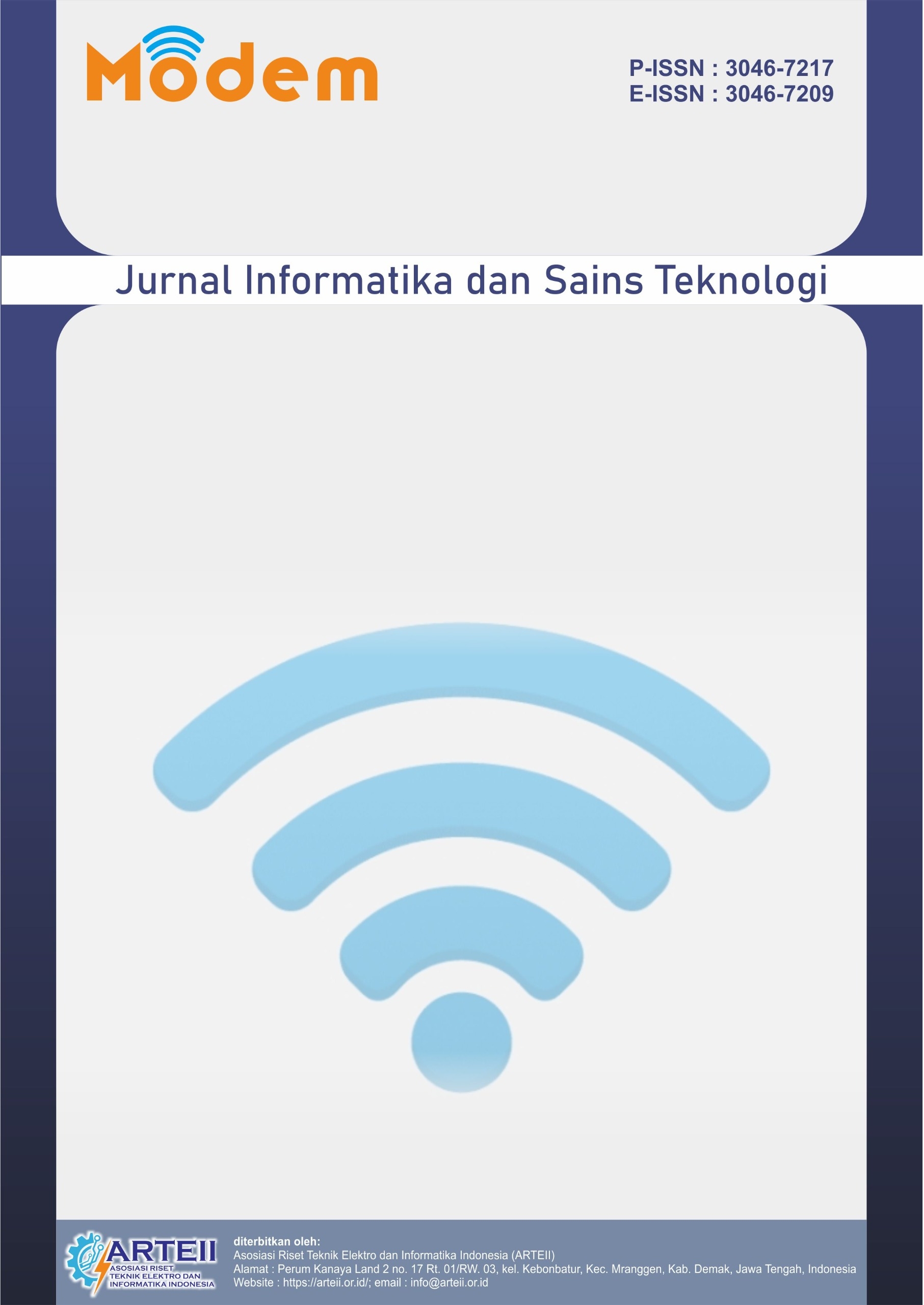 Modem : Jurnal Informatika dan Sains Teknologi dengan E-ISSN : 3046-7209, P-ISSN : 3046-7217 diterbitkan oleh Asosiasi Riset Teknik Elektro dan Informatika Indonesia dan Jurnal ini terbit 1 tahun 4 kali (Januari, April, Juli dan Oktober). Modem : Jurnal Informatika dan Sains Teknologi memuat hasil-hasil penelitian di bidang Ilmu Informatika dan Teknologi. Modem : Jurnal Informatika dan Sains Teknologi berkomitmen untuk menerbitkan artikel berbahasa Indonesia yang berkualitas dan dapat menjadi referensi utama bagi para peneliti di bidang Ilmu Informatika dan Teknologi.